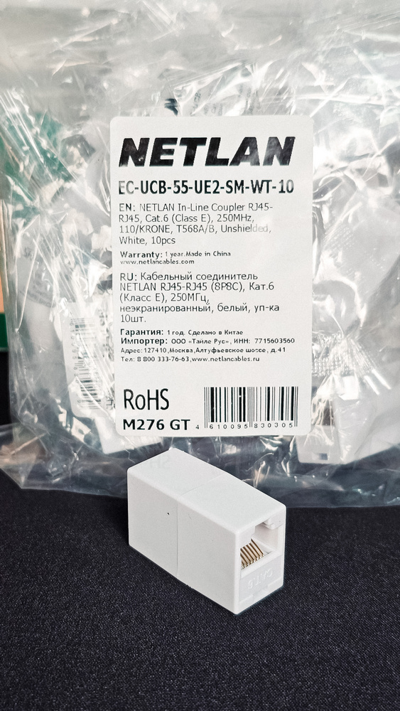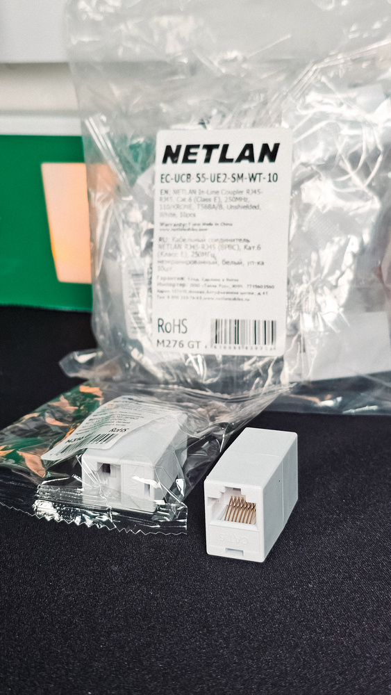 Кабельный соединитель NETLAN RJ45-RJ45 (8P8C), Кат.6 (Класс E), 250МГц, неэкранированный, белый EC-UCB-55-UE2-SM-WT-10